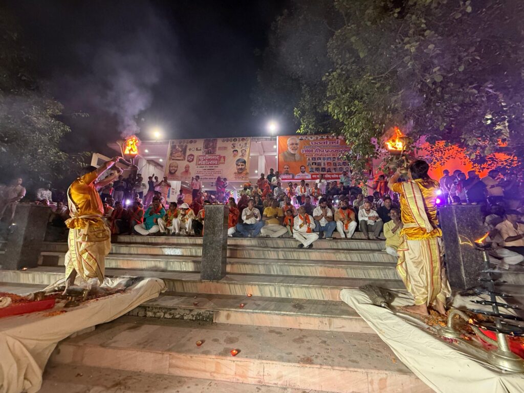 🔵 काशी से आए पुरोहितों ने वैदिक मंत्रोच्चारण संग की दिव्य गंगा आरती!