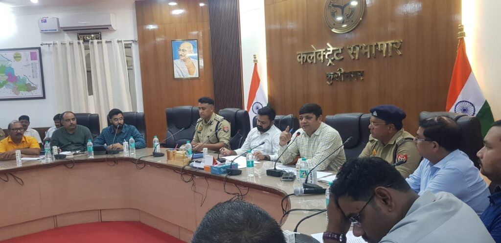 कुशीनगर :- आगामी त्यौहार मोहर्रम, श्रावण मास कावड़ यात्रा, के दृष्टिगत जनपद में कानून एवं शांन्ति व्यवस्था को सुदृढ़ बनाये रखने के उद्देश्य से जिलाधिकारी महेंद्र सिंह तंवर व पुलिस अधीक्षक संतोष कुमार मिश्रा ने आज कलेक्ट्रेट सभागार में अधिकारियों, विभिन्न सम्प्रदाय के धर्मगुरूओं एवं जनपद के प्रतिष्ठित नागरिकों के साथ बैठक किया।
