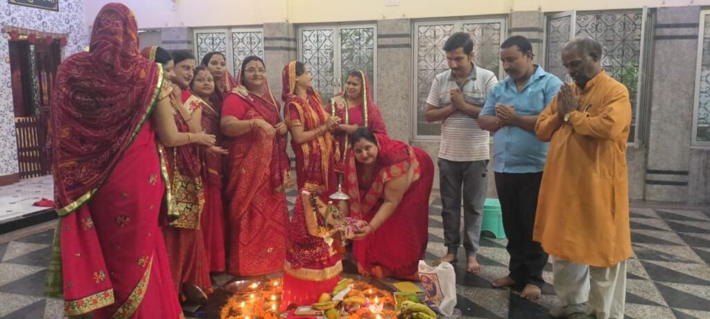इस अवसर पर वीरांगना नगर अध्यक्ष मीना शर्मा के नेतृत्व में राधा महिला समिति की सदस्याओं — आराधना शर्मा, सीमा शर्मा, आदित्य शर्मा, चंद शर्मा, मीरा शर्मा, लता शर्मा, सरिता शर्मा, गीता सोनी, एवं शिल्पी शर्मा — ने पारंपरिक विधि-विधान से तुलसी माता का पूजन एवं विवाह संस्कार संपन्न किया।