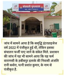 मुगलसराय कोतवाली के पड़ाव इलाके में स्थित आकाश प्लाजा कटरा में संचालित बताई जा रही समृद्धि इंटरप्राइजेज की जांच के लिए शनिवार को प्रशासनिक टीम पहुंची! बताया जा रहा है कि यह दुकान लंबे समय से बंद थी! जांच टीम ने मकान मालकिन की मौजूदगी में शटर का ताला तोड़कर भीतर निरीक्षण किया।