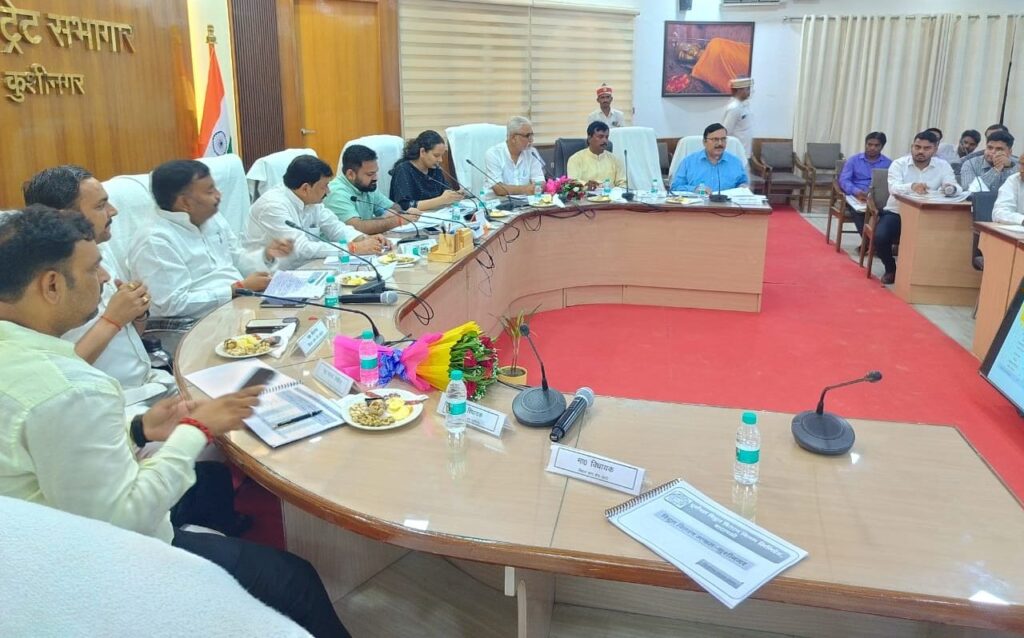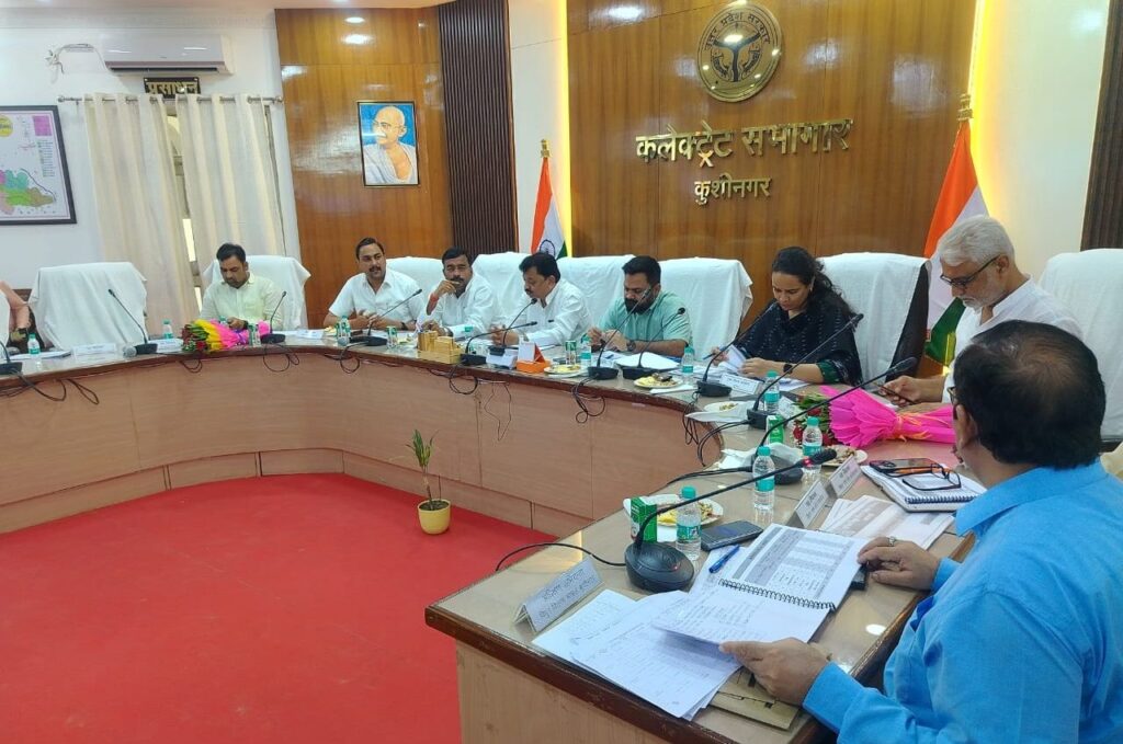 कुशीनगर :- मां0 सांसद कुशीनगर विजय कुमार दुबे की अध्यक्षता एवं मा0 विधायक गण सहित डीएम सीडीओ की उपस्थिति में विद्युत विभाग की आवश्यक बैठक कलेक्ट्रेट सभागार में संपन्न हुई।