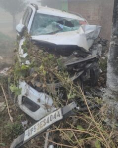 दबिश से लौट रही पुलिस की गाड़ी पेड़ से भिड़ी, उपनिरीक्षक की मौत, पांच पुलिस कर्मी घायल।