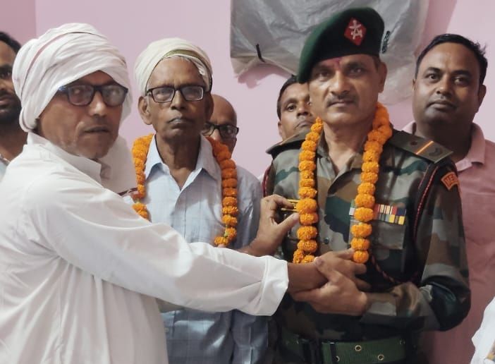 ✓ सेवानिवृत्त नायब सूबेदार कमाण्डों पारसनाथ गुप्ता का घर पहुंचने पर परिजनों, क्षेत्रीय जनता और शुभचिंतकों द्वारा किया गया भव्य स्वागत।